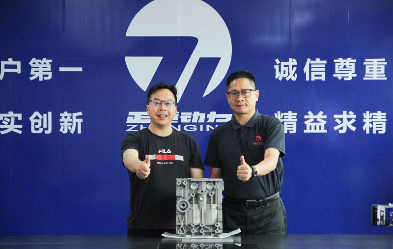 签约仪式后,双方就正在合作开展的科研项目“轻量化柴油机高强度铝合金缸体研发”进行阶段性成果交流,并在正恒动力现场进行了高强度柴油机铝合金缸体样件的交付。