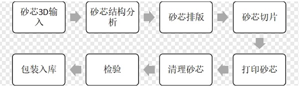 3D 打印砂型技术通俗来讲是借助专业 3D 建模软件,依据铸件的用途、性能等要求,设计出三维模型后。将模型转换为 STL 等 3D 打印适用格式后,直接输入到打印机,即可实现智能化生产。