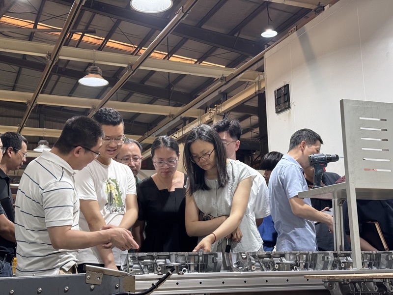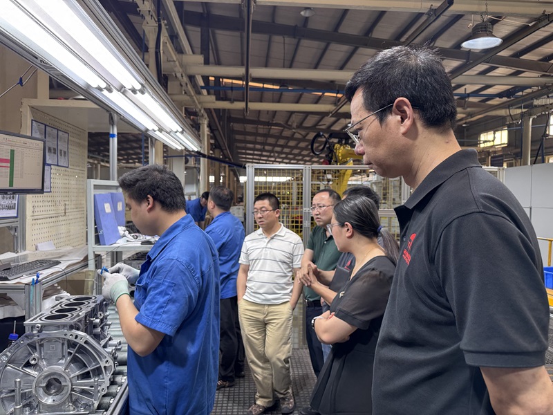 会议伊始,正恒动力技术团队陪同西华大学专家实地考察了赛力斯发动机缸体全自动生产线,该产线作为正恒动力智能化制造的新建产线,其生产效能提升与工艺优化成为双方重点研讨方向。在专题交流环节,正恒动力领导系统阐述了产线后工程现状,分别就毛刺机器人智能化改造、自动检测设备精度提升两大关键技术需求进行说明,强调通过技术创新实现降本增效的核心目标。工厂长曾总及技术中心黄总进一步补充了自动化升级项目的战略定位,提出构建产学研协同创新体系的发展愿景。